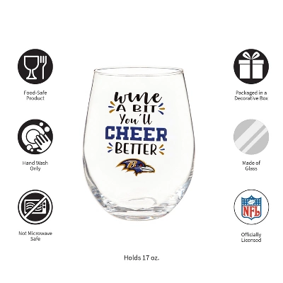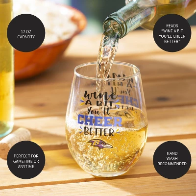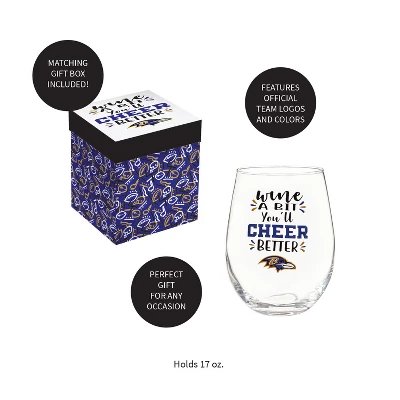 - Enjoy a glass of wine while watching your favorite NFL team. Features the official Baltimore Ravens logo and colors.