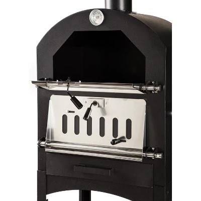 This functional Charcoal Grill/Oven/Chimenea covers all the bases for your outdoor grilling, cooking, and warming needs. Plus, its stylish looks offer a sophisticated take on the traditional grill and give you a great way to prepare a meal for the whole gang or simply warm up and hang out next to on a chilly day. Heavy duty, durable design features two compartments for charcoal and grilling and a capped chimenea to cut down on smoke. Easy and safe to use with coated steel construction that is heat-resistant with a powder finish that ensures long-lasting use and enjoyment. Sturdy wheels allow for easy mobility and the perfect placement. Great for outdoor gatherings, impromptu barbecues, and all-around fun! Makes a great gift for birthdays, graduations, housewarming parties, and the holidays.