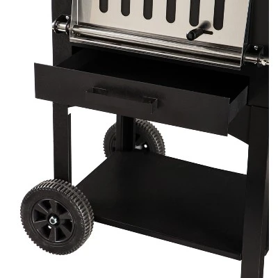 - A sophisticated take on the traditional grill with two compartments for charcoal and grilling (charcoal not included).