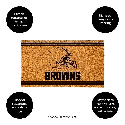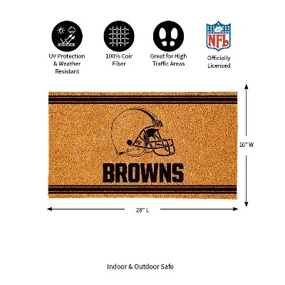 - Measures 28 x 16 inches. Make sure you’re prepared for the next big Cleveland Browns game with this Logo Turf Mat.