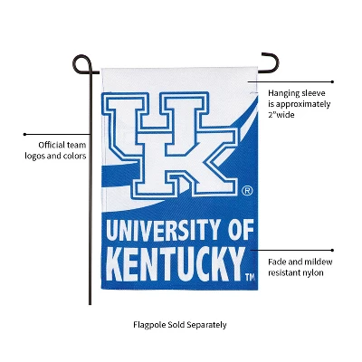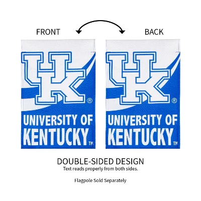 - Features University of Kentucky colors of blue and white. Showcase your fandom for this national powerhouse with the officially licensed University of Kentucky logo on this unique garden flag. It’s perfect for displaying during your favorite college sports season or year round.