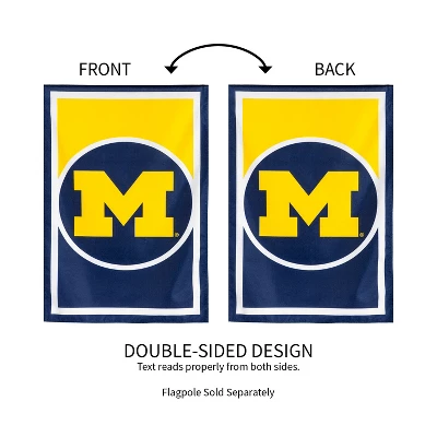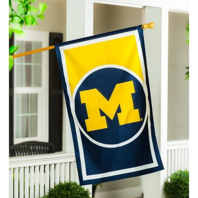 - Features University of Michigan colors of blue and yellow. Showcase your fandom for this national powerhouse with the officially licensed University of Michigan logo on this unique house flag. It’s perfect for displaying during your favorite college sports season or year round.
