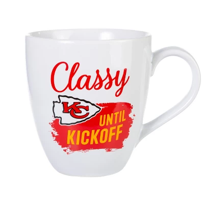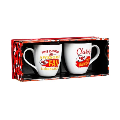 - These mugs have a sleek design and also include playful text to get you ready for gameday. Reads: “This is what an Awesome Fan Looks Like” and “Classy until Kickoff.” Perfect gift for a friend or family member who is a fan of the Kansas City Chiefs.
