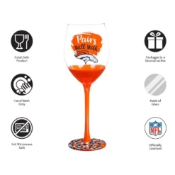 - Wine pairs well with your favorite NFL team. This decorative wine glass features the official Las Vegas Raiders logo and colors. The base includes an animal print pattern that elevates the overall design.