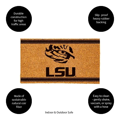 - Measures 28 x 16 inches. Step up your school spirit with this Louisiana State University Logo Turf Mat.