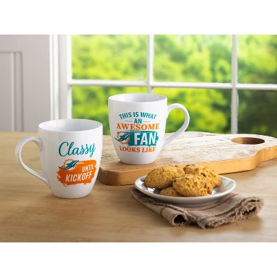 - These mugs have a sleek design and also include playful text to get you ready for gameday. Reads: “This is what an Awesome Fan Looks Like” and “Classy until Kickoff.” Perfect gift for a friend or family member who is a fan of the Miami Dolphins.
