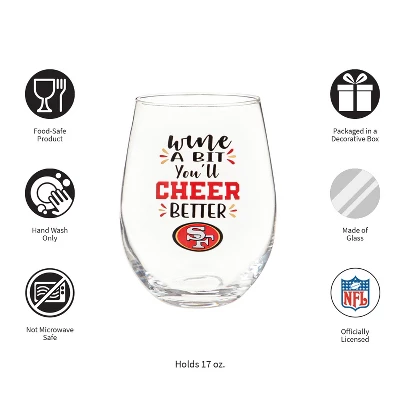 - Enjoy a glass of wine while watching your favorite NFL team. Features the official San Francisco 49ers logo and colors.