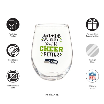 - Enjoy a glass of wine while watching your favorite NFL team. Features the official Seattle Seahawks logo and colors.