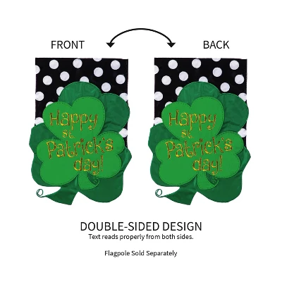 Celebrate a very Irish holiday with this St. Patrick’s Day flag. This applique flag is made of durable 310 denier nylon to ensure the design will withstand all types of weather. The applique process combines pieces of fade resistant fabric with tight, detailed stitching to create a mosaic effect. The soft, yet heavy-weight material illuminates in the sunlight, making any of our applique flags a wonderful addition to your home or garden. All flags also feature an insertion sleeve at top for use with any standard flagpole or stand, sold separately. This garden-sized flag measures 12.5 inches wide and 18 inches long.