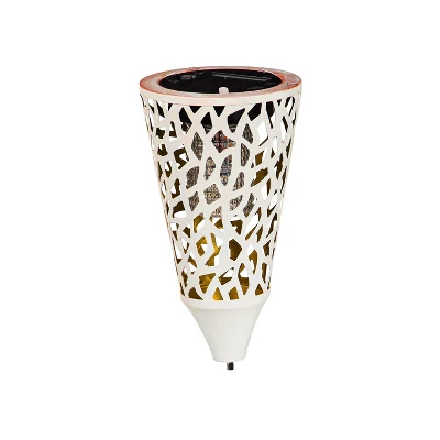 Add an extra touch of charm to your outdoor decor with this interchangeable solar finial, featuring a tapered laser cut design. You can instantly elevate the display of flags by screwing in the ivory finial to a stand or pole, sold separately. Crafted of outdoor-safe and weather-resistant materials, this finial harnesses the power of the sun to light up when night falls. Turn the design on by the touch of a button to illuminate flags and decor. Allow up to 8 hours in direct sunlight for a full charge. The design should stay lighted for 6-8 hours. 1x AAA Ni-MH rechargeable battery included.