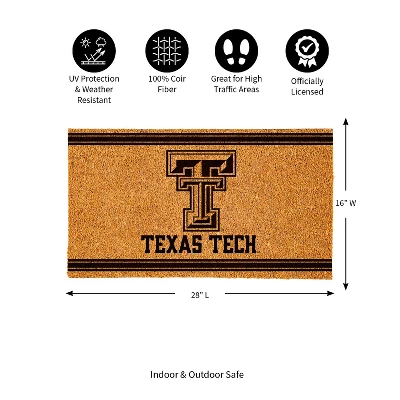 - Measures 28 x 16 inches. Step up your school spirit with this Texas Tech University Logo Turf Mat.