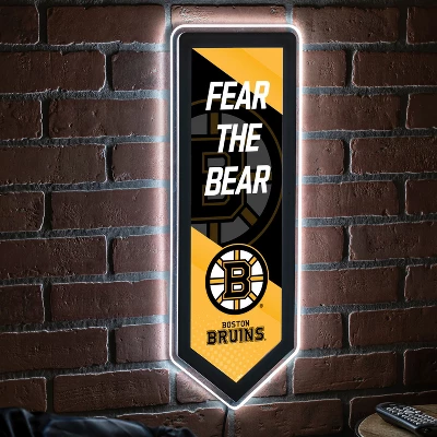 - Officially licensed and made in Fort Worth, Texas. Measures 9″ x 23″ x 0.25″. Show off your team spirit with this Boston Bruins Pennant LED Wall Decor.