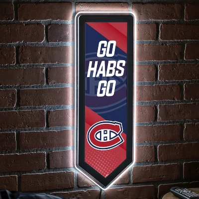 - Officially licensed and made in Fort Worth, Texas. Measures 9″ x 23″ x 0.25″. Show off your team spirit with this Montreal Canadiens Pennant LED Wall Decor.
