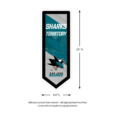 - Officially licensed and made in Fort Worth, Texas. Measures 9″ x 23″ x 0.25″. Show off your team spirit with this San Jose Sharks Pennant LED Wall Decor.