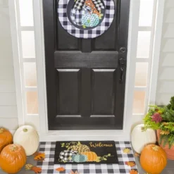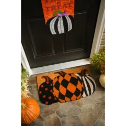 Evergreen Pattern Pumpkins Shaped Indoor Outdoor Natural Coir Doormat 1’6″x2’6″ Multicolored