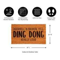 Evergreen Doorbell Broken Yell “Ding-Dong Really Loud Indoor Outdoor Doormat 1’4″x2’4” Brown